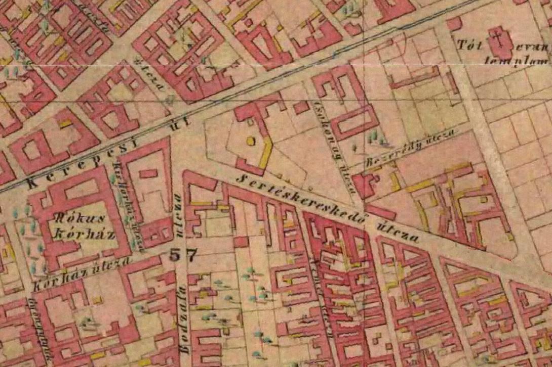 1869-et követően többszöri nekibuzdulás, a szükséges tőke biztosításának részvénykibocsátással, országos gyűjtéssel vagy állami sorsjátékkal is csak részben sikeres próbálkozásai után a Főváros egy telek kedvező átengedésével tette lehetővé a pesti Népszínház felépítését. A telek az akkori Kerepesi út - Bodzafa utca - Sertéskereskedő utca találkozásánál volt. (A Kerepesi út 1906-től Rákóczi út, a Bodzafa utca 1889-től Rökk Szilárd utca, a Sertéskereskedő utca 1874-től Népszínház utca.)