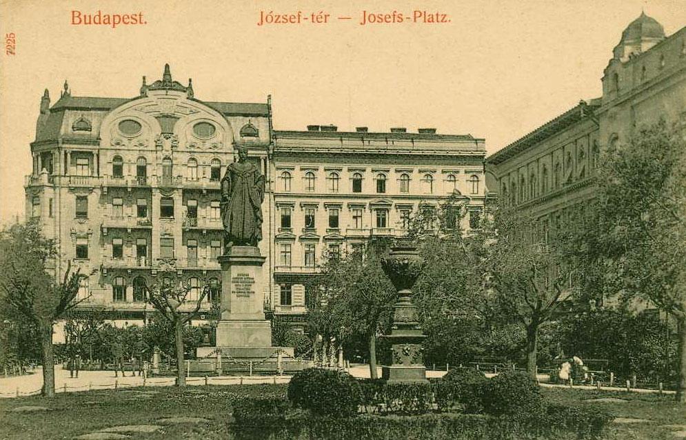 A téren található József Nádor szobra Halbig János