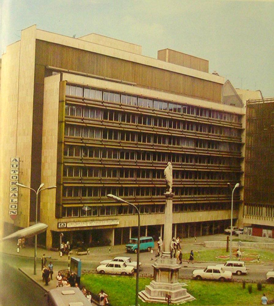 ...A belváros egyik leghangulatosabb teresedéseként számon tartott Szervita téren, amely többek között a Budapest legnagyobb köztéri mozaikjával büszkélkedő Török-bankháznak is helyet ad, korábban egy nagy eklektikus bérház állt. A súlyosan megsérült épületet a háború után lebontották, és helyén játszótér működött 1969-ig, amikor az OMFB (később Nemzeti Kutatási és Fejlesztési Hivatal) megkapta saját székházának céljaira. A telek azonban túl nagynak bizonyult, így idekerült az INTERAG által működtetett parkolóház is.