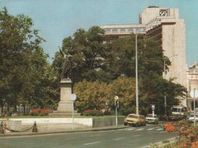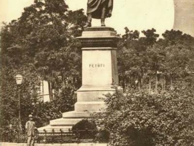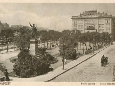 A téren álló Petőfi Sándor szobrát Huszár Adolf készítette 1882-ben.
