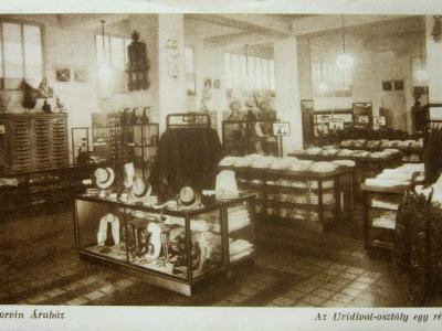 A Corvin áruház 1926. március 1-én nyitotta meg kapuit a vásárlók előtt. Akkoriban ez volt az ország legnagyobb áruháza, ahol a választékot úgy állították össze, hogy a drága luxuscikkek mellett ott legyenek az olcsó, de jó minőségű áruk is. Az áruházban vendéglő, kávéház, menetjegyiroda és gyorsfényképészet is működött. Rendszeresen rendeztek divatbemutatókat és képzőművészeti kiállításokat is, délutánonként pedig szalonzenével szórakoztatták a vásárlóközönséget. A gyermekek számára meseországot rendeztek be. 1931-től itt üzemelt az ország első mozgólépcsője is. Az áruháznak otthont adó épületet Reiss Zoltán tervei alapján készítették. A klasszicizáló stílusú, látszólag egyemeletes palotahomlokzat, valójában négy emeletet rejtett maga mögött, melynek ablakai teljes négy emelet magasságban összefüggtek, és ezeket alig észrevehető fabetétek választották el. A bejárat mögött kétszintes, üvegtetős csarnokrész fogadta a vásárlókat. A homlokzati felületeket Beck Ö. Fülöp és Pongrácz Szigfrid munkái díszítették.