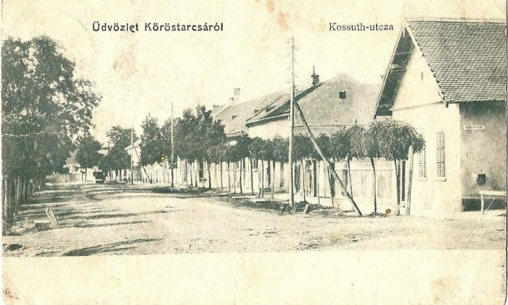 Kossuth utca - Híd utca sarok kb. 1910-1928 között a református iskola építése előtt.